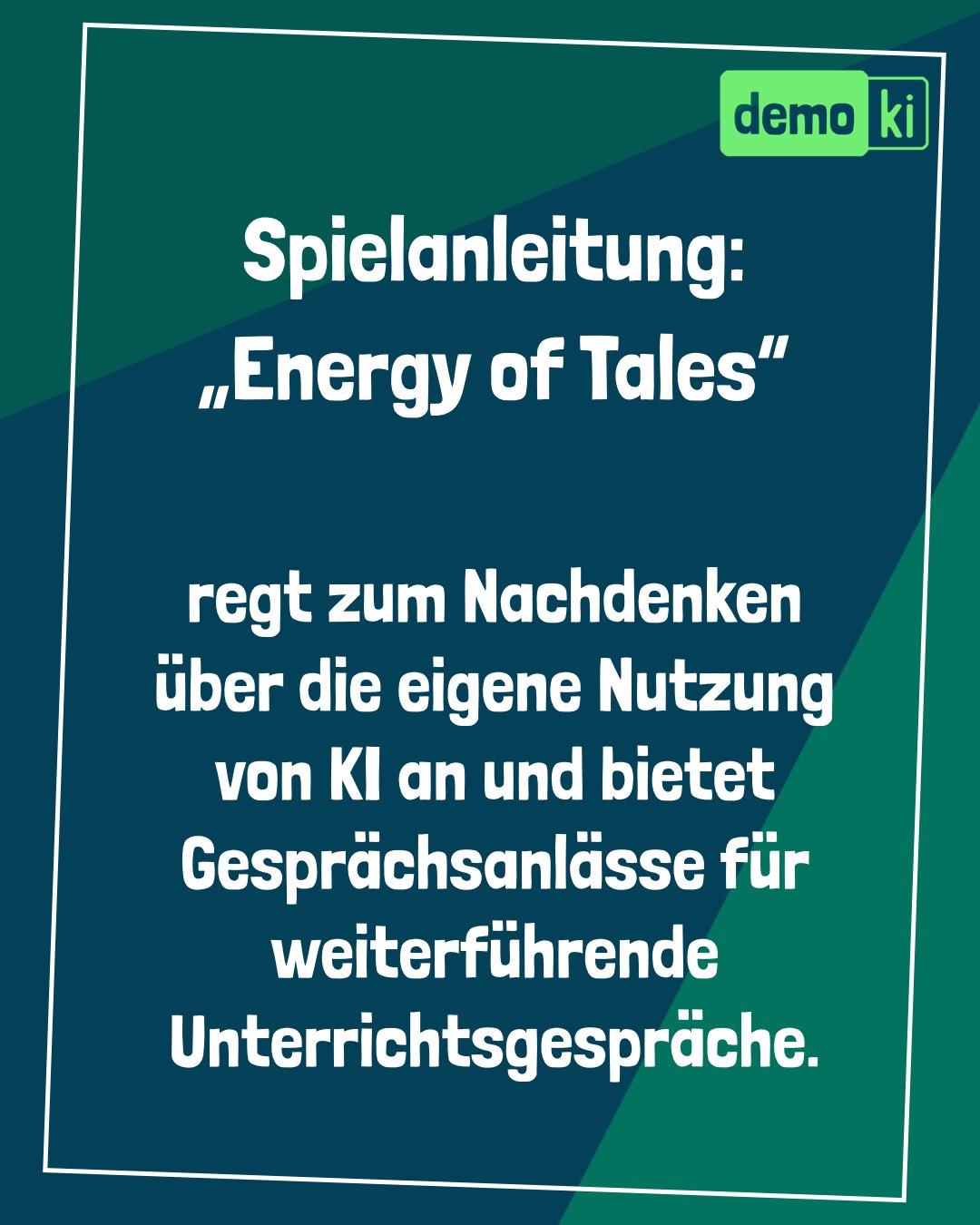 Das Spiel soll das Bewusstsein in Bezug auf den Energieverbrauch von der Nutzung von KI schärfen. Es bietet zudem Gesprächsanlässe für die Themen: