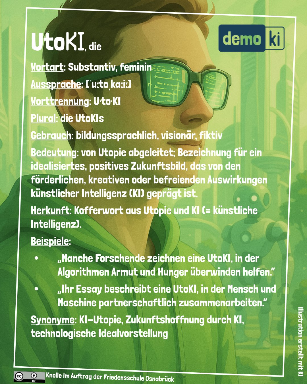 Künstliche Intelligenz wird schon und zukünftig noch mehr in den unterschiedlichsten Bereichen eingesetzt. Ob das gut oder schlecht ist, wird sich wahrscheinlich noch zeigen. Man könnte sich aber schon einmal Gedanken über eine mögliche DystoKI oder UtoKI machen. Hier werden mögliche Einsatzmöglichkeiten von KI in Kürzte präsentiert.